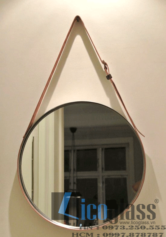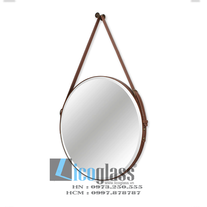Tên Sản Phẩm : Gương Tròn Treo Dây Da Mã Sản Phẩm : MH-2125-03 Chất Liệu : Khung gỗ, bọc da, dây treo bằng da Kích Thước : 60x60x5 cm Hình Dạng : Hình tròn