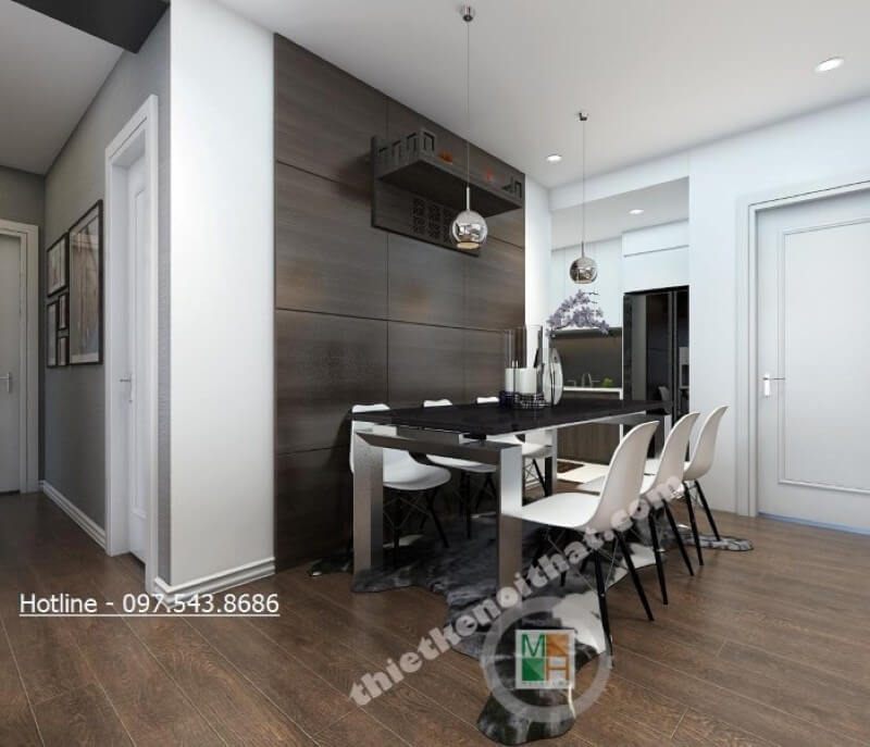 Thiết kế nội thất phòng ăn chung cư hiện đại, liền kề với khu vực nhà bếp tạo sự thuận tiện nhất cho người