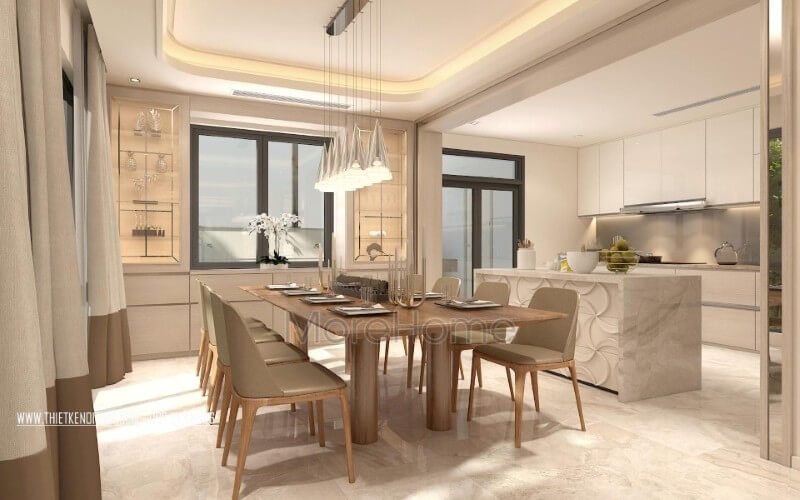 Thiết kế nội thất phòng ăn biệt thự hiện đại, sang trọng và ấm cúng