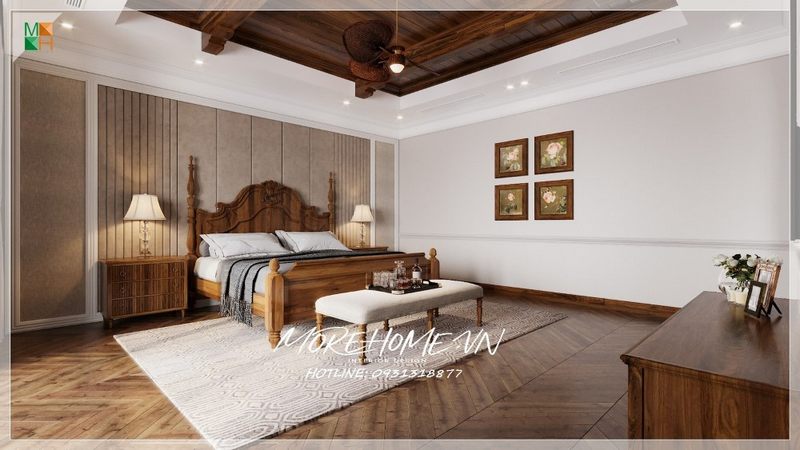 Mẫu giường ngủ bằng gỗ óc chó cao cấp được thiết kế theo phong cách tân cổ điển sang trọng cho phòng ngủ chung cư, nhà phố, biệt thự