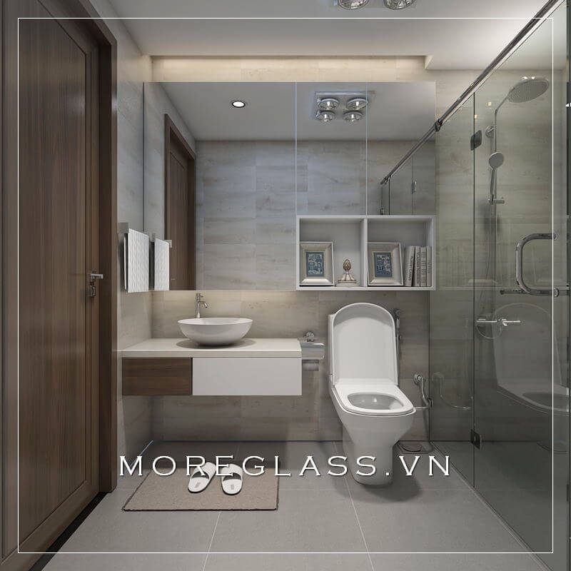 Gia chủ thường ưu tiên và hướng đến mẫu phòng vệ sinh nhỏ có diện tích 3m2 đẹp và kết hợp phòng tắm kính đẹp gam màu trắng xám tính tế.