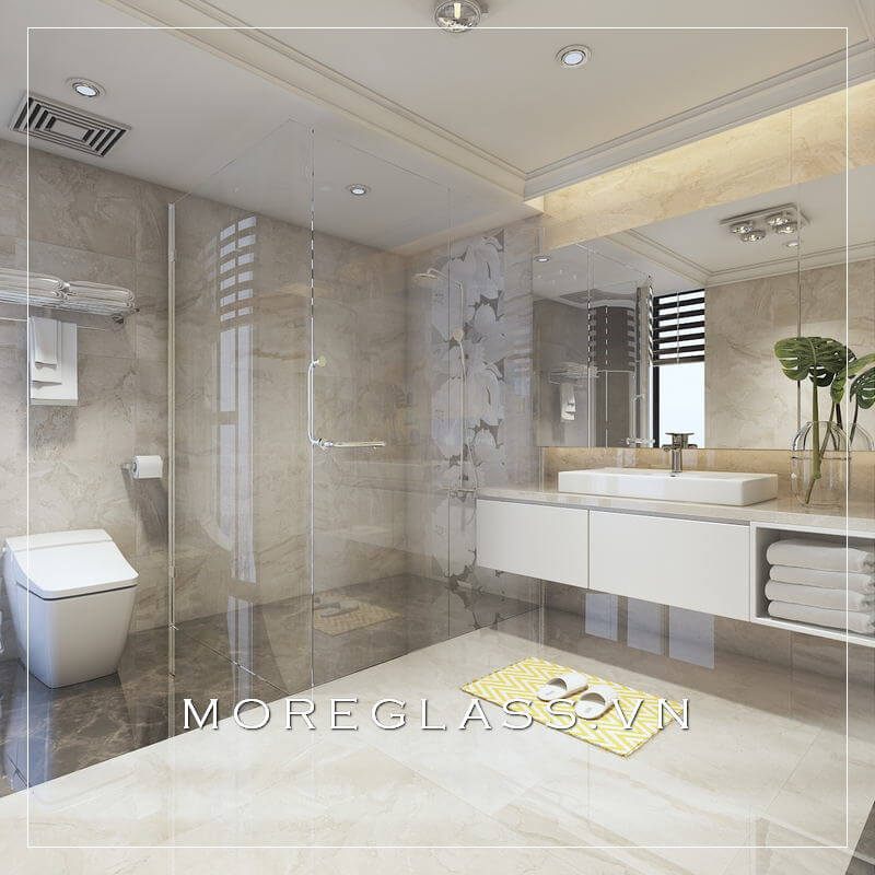 Việc thi công phòng tắm kính cường lực cho biệt thự cao cấp đã được thực hiện.