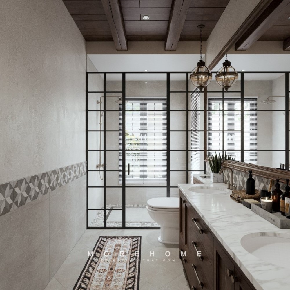 Mẫu thiết kế nội thất phòng tắm nhà vệ sinh để tạo nên sự sang trọng cho biệt thự.