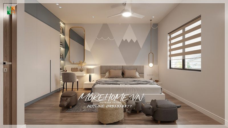 Gia chủ đã chọn nội thất phòng ngủ gỗ công nghiệp cho phòng ngủ của trẻ em.